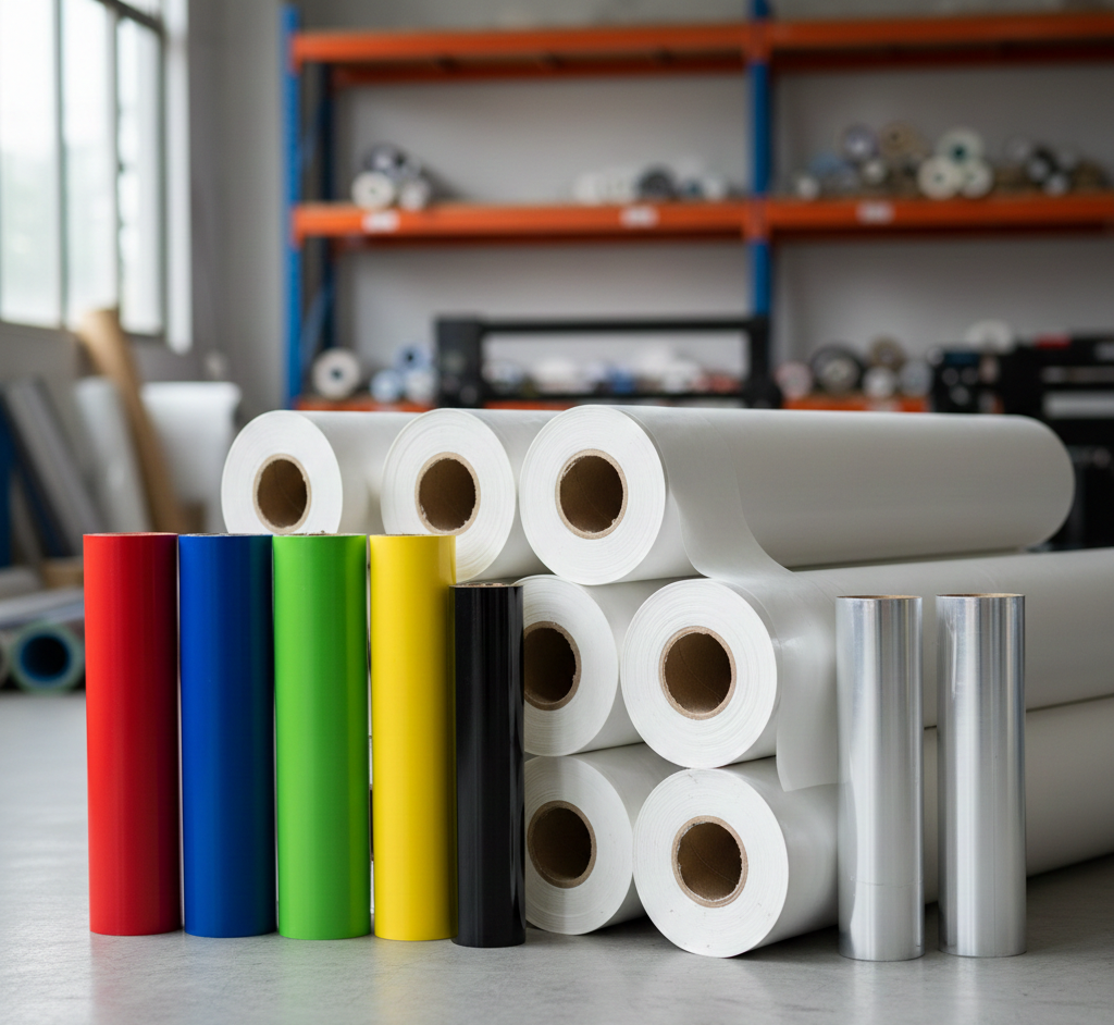 FORNITURA DI PELLICOLE ADESIVE PVC FREE PER STAMPA DIGITALE SERIGRAFICA E LAMINAZIONE OLTRE A UNA VASTA GAMMA DI PELLICOLE COLORATE PER INTAGLIO